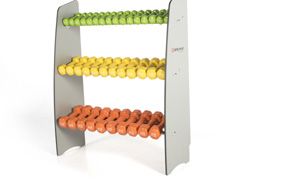 Inklusive drei Tabletts zur Aufbewahrung von Hanteln aus Vinyl oder Gummi.