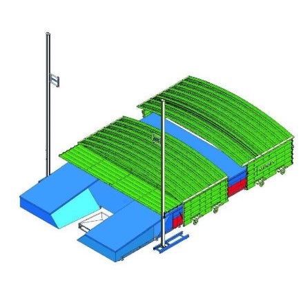 Basic Schutzschuppen: Ausmaße 4,6x5,4 m, gefestigt/drehbare Räder or on rails, 1 Element.
