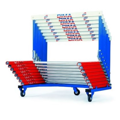 Dieser Wagen erlaubt Installation und schnelles Stapeln der Hürden.