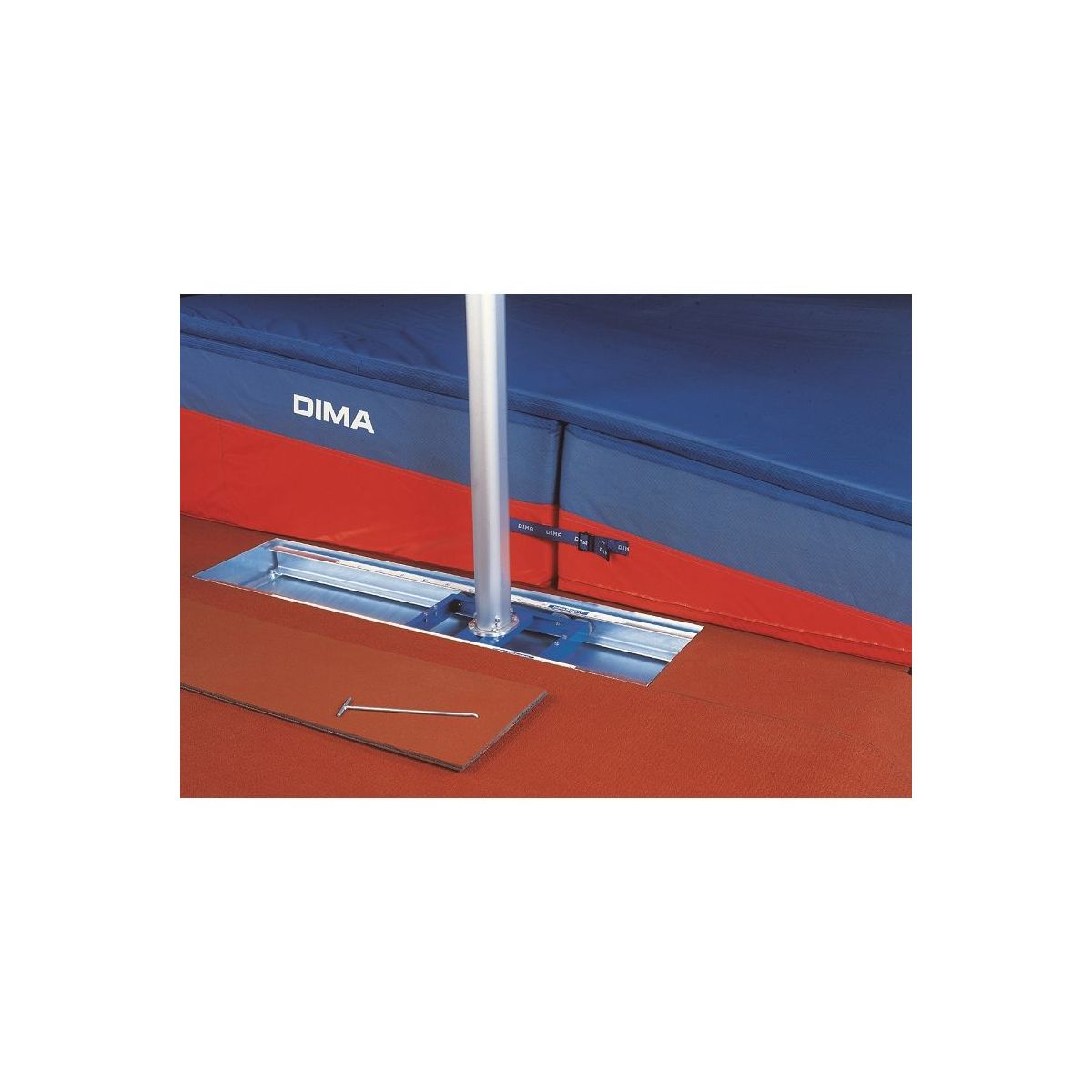 Ideal für den Indoorgebrauch und Multi-Sport Arenen. Die Schienen sind aus hochqualitativem Stahl hergestellt, gepackt in einen Aluminiumrahmen, für eine kontrollierte und sichere Installation. Der Deckel wird mit einem synthetischen Bedeckung bedeckt. Breite des Rahmens : 380 mm
