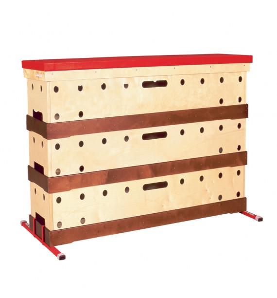 Besteht aus 3 Educ‘Gym-Teilen mit einer Höhe von 33 cm. Ideal zur Einführung in das Springen. Jeder Teil kann separat verwendet werden. Gepolsterter, abnehmbarer Abdeckteil, Stabilisierer und Transporttrolleys.