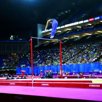 Dieses Modell hat gefräste, rotierende Köpfe aus massivem Stahl. Die beiden Rotationsachsen sind mechanisch so konzipiert, dass ein völlig ruckfreier „Kardaneffekt“ eintritt. Die Pfosten dieses Recks haben einen Durchmesser von 70 mm und können mittels Schnellspannern leicht auf- und abgebaut werden. Rutschhemmende Füße, beschichtete Seile.