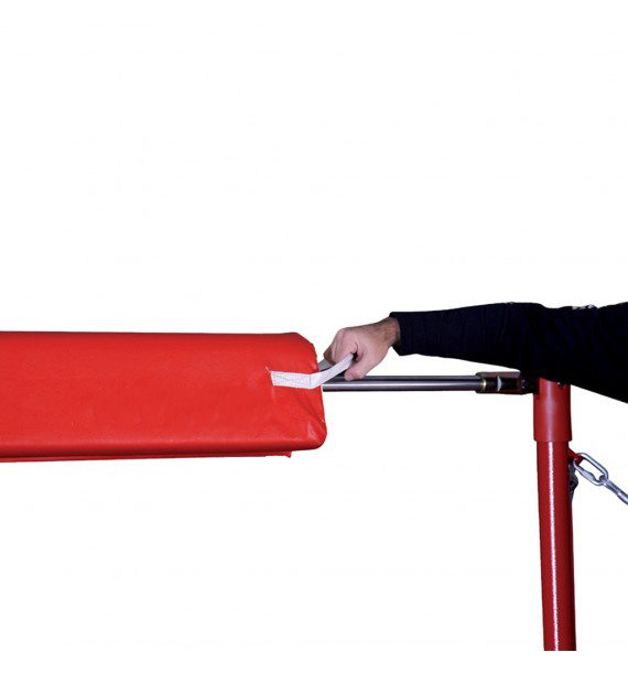 Dieses Pad ist mit einem Griff versehen, und der Coach wirft es auf die Stange, sobald der Turner diese loslässt.