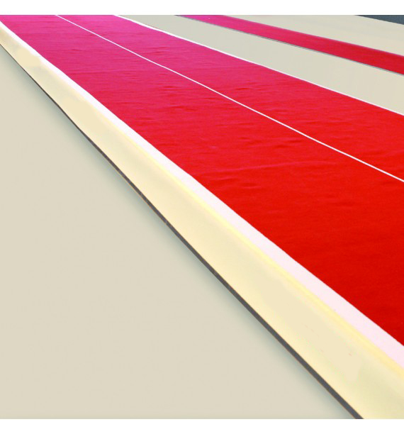 Gefederte Bodenteile mit eingebautem Einstellungsmechanismus, 4 cm tiefer Schaumstoff, Teppichbezug und Seitenschürzen. Diese Bahn kann an Körperbau und Fähigkeitsniveau jedes Turners angepasst werden. Durch ihr Designs trägt sie dazu bei, Überlastungsverletzungen aufgrund von Ermüdung während wiederholter Übungen zu reduzieren. Die Elastizität jeder Platte kann auf schnelle und einfache Weise individuell angepasst werden, sodass der Rebound über die gesamte Länge von 6 m abgestimmt werden kann.