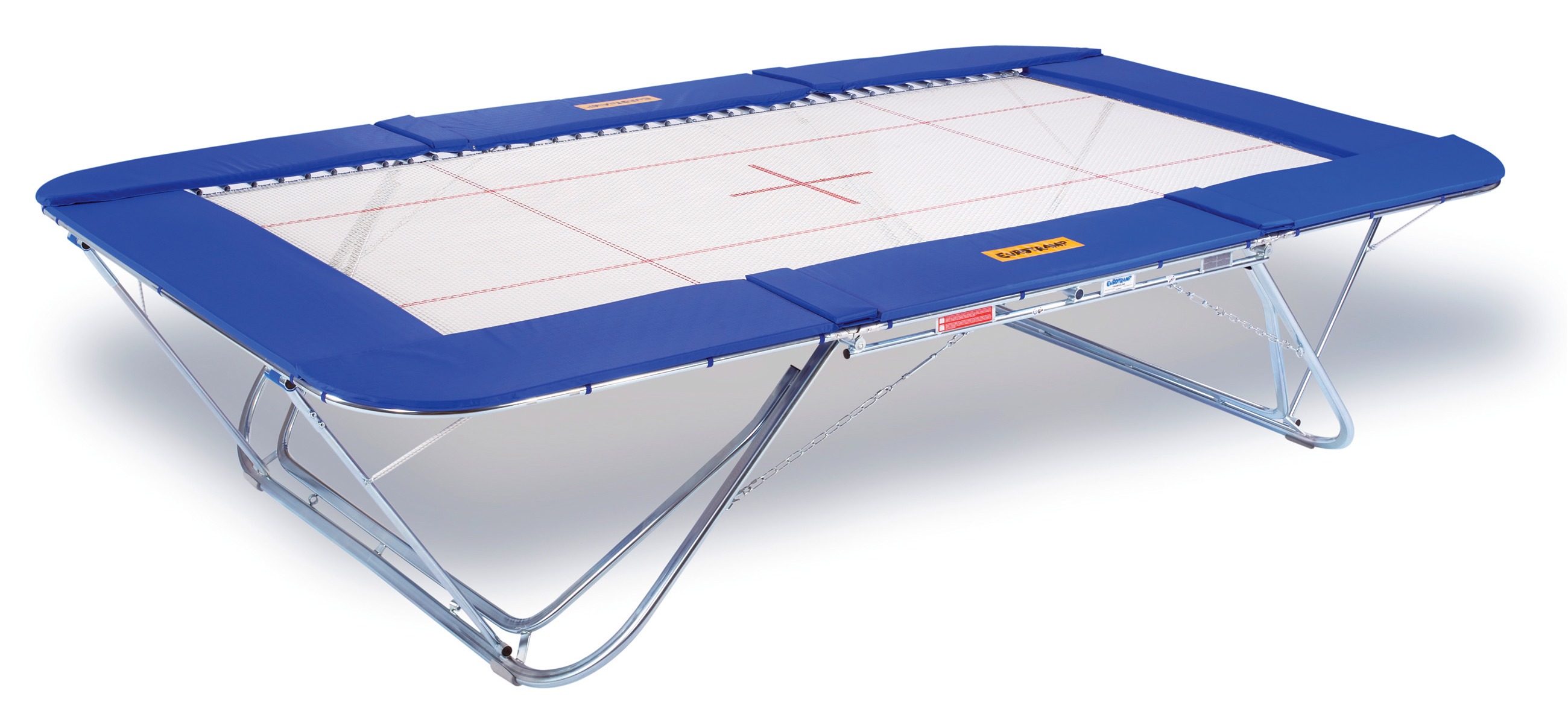 Das Trampolinbett (LxB: 426x213 cm) besteht aus 6x6 mm breiten gewebten Nylonsträngen. 110 galvanisch verzinkte Stahlfedern (Länge 258 mm, ø 29 mm) sowie 8 verstärkte Eckfedern (Länge 258 mm, ø 39 mm) spannen das Trampolinbett. Die maximale Eintauchtiefe beträgt 115 cm. Um das Trampolin optimal nutzen zu können, wird empfohlen, es in einem Raum mit einer Deckenhöhe von 7 m zu verwenden.