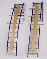 Bestehend aus Stahlrahmen, für die Höhen- und Neigungsregelung, an der Wand durch Stecker befestigt werden, Leiter mit lackierten Stahlsäulen und Buchenholz leiterstufen, Durchmesser 30 mm, von denen drei außen vorstehend sind.
