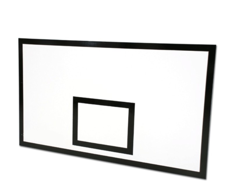Basketball-Zielbrett aus Pressholz für den Indoor-Bereich. Maße 1800x1050x18mm. Weiss mit schwarzen Markierungslinien. Hergestellt in der EU.