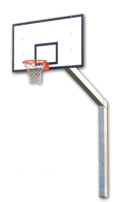 Konstruktion aus feuerverzinktem Stahl, 150x150x3mm, hergestellt aus einem geschweißtem Element. Mit Bodennhülsen und Deckel. Ausgerüstet mit Basketball-Backboard aus HPL, 180x105cm und einer Dicke von 10mm, montiert in einen Rahmen aus feuerverzinktem Stahl, mit einer Stabilisierungsstange verbunden mit der Projektion, fixierter Ring aus lackiertem Stahl und Netz. Hergestellt in der EU.