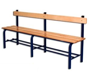 2 meter lange Sitzbank mit Rückwand für Umkleideraum . Konstruktion aus lackiertem Stahlrohr mit einem Durchmesser von 40mm, unten mit Schuhablage. Die Sitzauflage aus lackiertem Holz. Holzbrett 100x21mm. Pads aus Gummi. Hergestellt in der EU.
