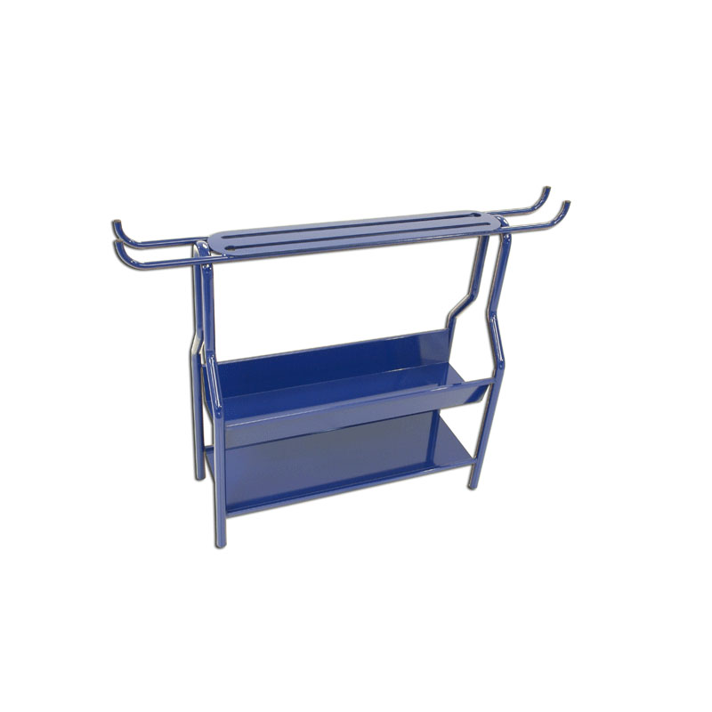 [Lackierter Stahl, 3 Regale, 4 Gummiräder. Aufnahmefähigkeit:] 40 Schwungkeulen, 100 Stöcke, 60 Aufstützen, 25 Hula—Hoop Reifen, 25 Springseile. Hergestellt in der EU.