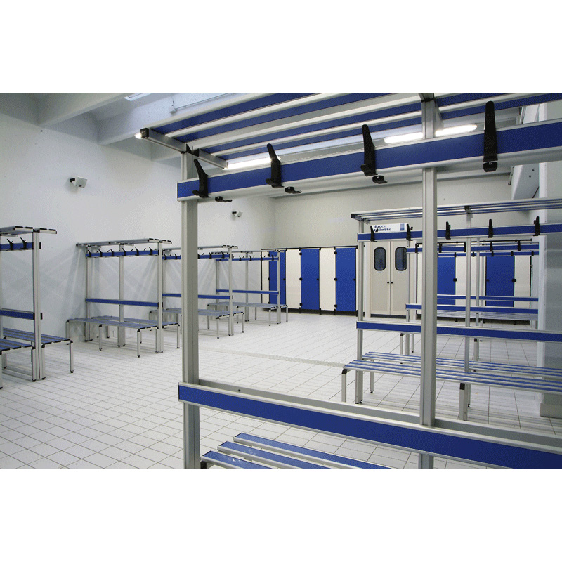 Umkleideraum-Bank mit Rückenlehne und Kleiderbügel, doppelt