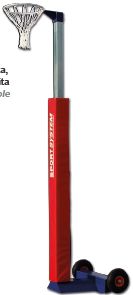Mobiles Netball-System mit Rädern, mit einem höhenverstellbaren Ring. Ständerhöhe - 200 cm. Jedes Teil ist mit Stahlsocken und mit Gummirädern ausgestattet, galvanisiertes Stahlprofil mit quadratischem Querschnitt, mit 2 Gleit-elementen zur Höhenverstellung, Schutzpad aus Schaumstoff, gedeckt mit synthetischem Stoff. Stahlring mit Nylonnetz. Hergestellt in der EU.